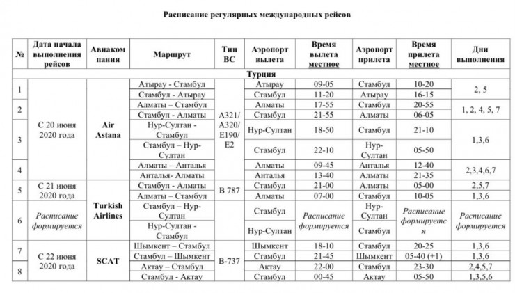В ведомстве добавили, что рейсы будут осуществляться в условиях повышенных мер санитарной безопасности, установленных Казахстаном и иностранными государствами.