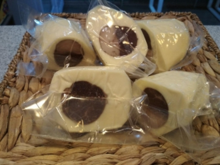 В одном из магазинов крафтовых сыров Алматы есть необычная позиция - казыкавалло. Название, скорее, придумали от итальянского "качокавалло" (caciocavallo) - это типичный итальянский сыр категории "Паста Филата" (Pasta Filata). В алматинском исполнении казыкавалло - это казы, завернутый в крафтовый сыр.