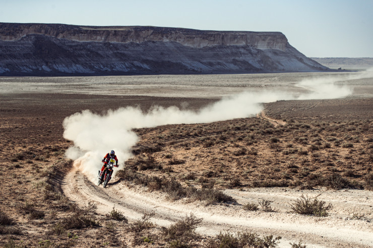 Трассой также предусмотрены живописный спуск с плато, скалистый подъем длиной четыре километра, песчаная дорога и 10-километровая дюна с финишем на вершине. К слову, прокладкой маршрута занималась команда зарубежных профессионалов.