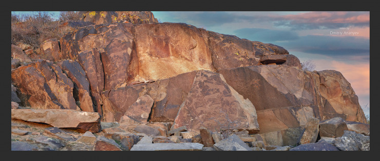 Большая панорама эпичной группы петроглифов. Фото Дмитрий Ананьев