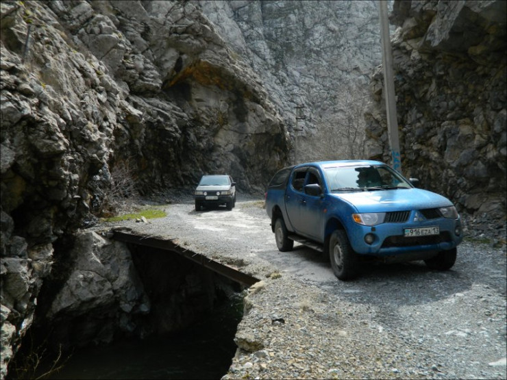 "Вот самый знаменитый в ущелье мост, который называют "чертовым". Удалось отыскать старое фото этого места. Как мы видим, здесь с 1950-х годов ничего не изменилось. Очевидно, чтобы проложить в этих местах дорогу, пришлось изрядно потрудиться и использовать не одну тонну взрывчатки", - пишет Алексей Гончаров.