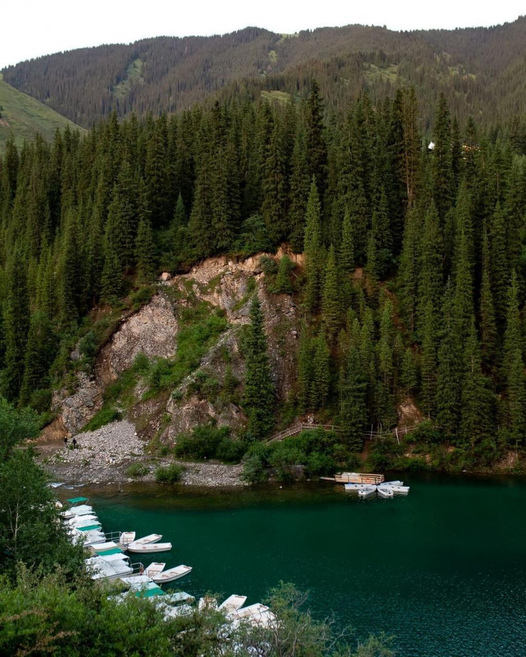Кольсайские озера – система из трех озер в ущелье Кольсай, а точнее – в перемычке, соединяющей хребты Заилийского и Кунгей Алатау. Озера включают в себя Верхний Кольсай на высоте 2 850 метров, самое крупное Среднее озеро, или Мынжылгы – на высоте 2 252 метра, третье озеро – на высоте 1 818 метров.