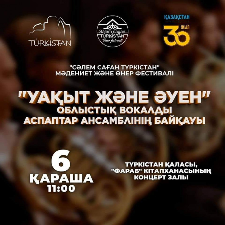 Фестиваль "Сәлем саған, Түркістан" в этом году включает в себя множество мероприятий. В частности, состоится областной конкурс традиционных исполнителей "Күміс көмей". Вечер приверженцев традиционного искусства стартует 1 ноября и пройдет в библиотеке "Фараб".