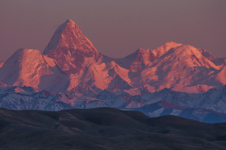 На закате пик загорается красным цветом и светится еще очень долго, даже после того, как все окружающие вершины погрузились во тьму.