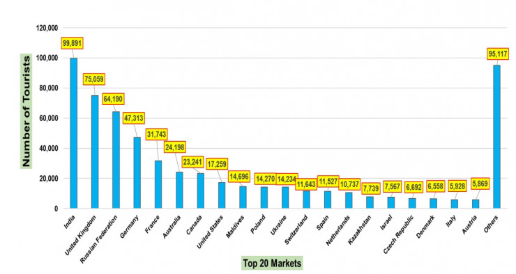 С 1 января по 15 ноября 2022 года в Шри-Ланку прилетели 7 739 туристов из Казахстана. По этому показателю наша страна обогнала Израиль, Чехию, Данию, Италию. Лидерами по количеству прибывших в страну за этот же период стали Индия (99 891 турист), Великобритания (75 059), Россия (64 190) и Германия (47 313 туристов).