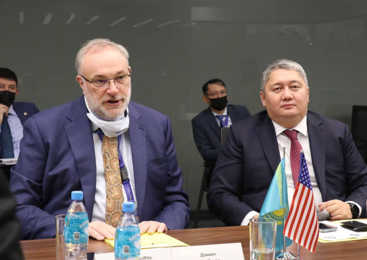 Состоялась встреча председателя Комитета гражданской авиации МИИР РК Талгата Ластаева, генерального директора Авиационной администрации Казахстана Питера Гриффитса со специалистами Администрации транспортной безопасности США (TSA) и экспертами Программы экспортного контроля и безопасности границ посольства США (EXBS).