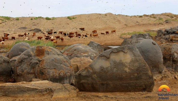 Месторождение Мунайлы-Мола - также одно из удивительных мест Атырауской области Казахстана. Гладкие черные шары формируют отличный футуристический пейзаж для фотографий.