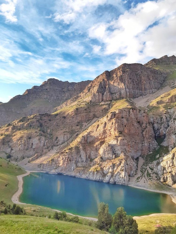 На высоте 2 100 метров над уровнем моря раскинулось горное озеро размером с два больших футбольных поля. Это настоящая жемчужина Сайрам-Угамского национального парка, самое высотное озеро Угамского хребта, откуда можно объять взором все величие хребта Каржантау и широкую долину реки Угам.