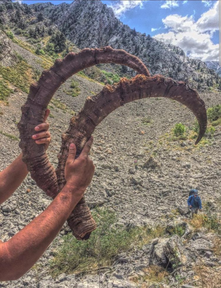 Поднявшись на гребень, поняли, что набрали лишнюю высоту, это нас не расстроило, но впереди нас ожидал затяжной извилистый спуск к озеру, которое находится на высоте 2 100 метров над уровнем моря. То есть нам предстояло спуститься с гребня на 700 метров ниже. Спуск занял около часа. Тропа проходила сквозь заросли зеленых сочных цветущих растений. Вокруг ни одного следа присутствия человека. Зато мы видели очень много горных козликов, которые убегали, заметив нас. Кстати, там можно увидеть очень много сброшенных рогов.