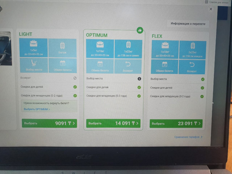 Самым доступным по стоимости является тариф "Легкий". Он включает в себя пять килограммов ручной клади. Все дополнительные услуги (например, багаж) могут быть приобретены во время бронирования билета либо позже, до вылета рейса. В пресс-службе Qazaq Air отмечают, что авиакомпания ведет политику открытости и раскрывает информацию о сборах, включенных в стоимость билетов.