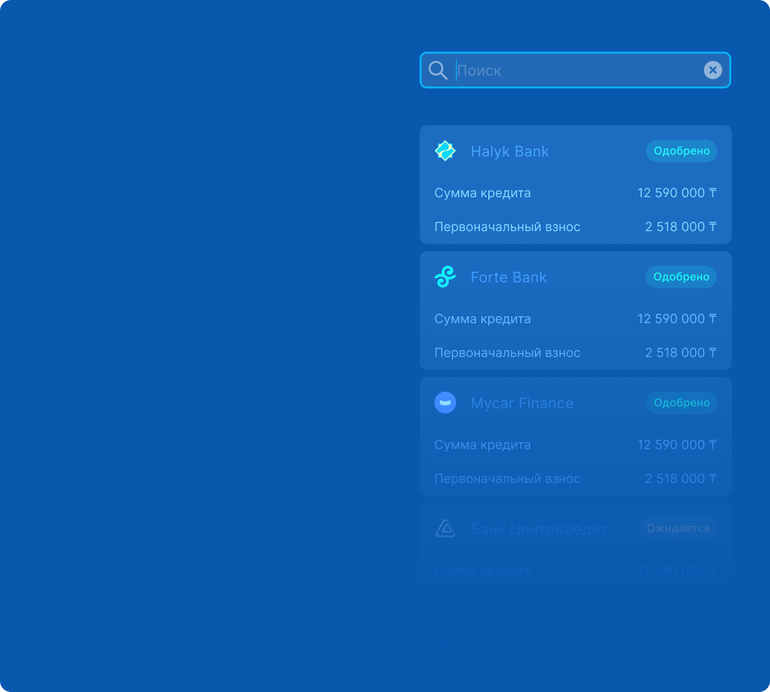 - Подайте 1 заявку на автокредит и получите ответ по одобрению от 8+ банков