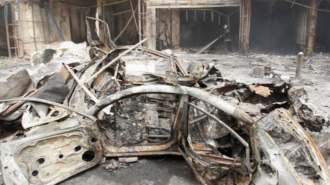 Между тем, как сообщил телеканалу BBC на арабском языке официальный представитель МВД Ирака Саад Маан, "заминированная машина взорвалась возле одного из ресторанов" в тот момент, когда в районе находилось много людей, спешащих сделать покупки к праздникам по случаю окончания месяца мусульманского поста Рамадана.