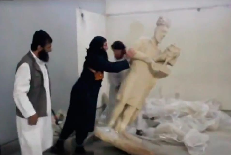 Разрушение культурного наследия народов Ближнего Востока "Исламское государство" начало у себя на "родине" в Ираке. Как утверждают сами вандалы, исторические памятники, воздвигнутые ассирийцами, принадлежат "периоду невежества" и "не должны существовать по шариату". Одной из первых жертв экстремистов стал музей в иракском городе Мосул. В феврале 2015 года люди в черно-белых одеждах, вооруженные кувалдами, проникли в здание и уничтожили десятки бесценных экспонатов, возраст которых - почти три тысячи лет. Среди них был один из шедевров ассирийского искусства - статуя крылатого быка, божества-защитника, созданного в IX веке до нашей эры.