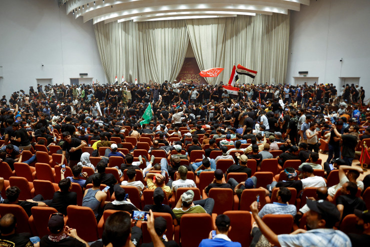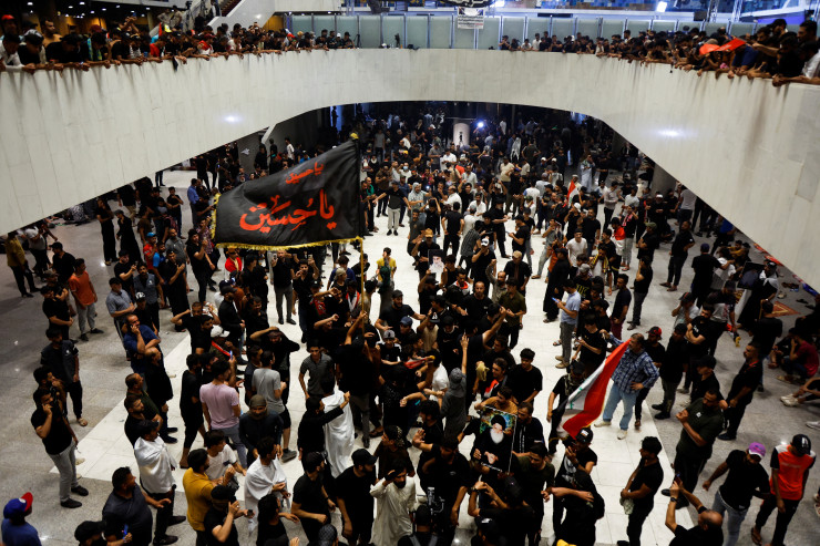 Тысячи сторонников шиитского мусульманского священнослужителя Моктады аль-Садра ворвались в укрепленную зеленую зону в Багдаде, заняв пустующее здание парламента второй раз за неделю, пока его шиитские соперники, большинство из которых близки к Ирану, пытаются сформировать правительство.