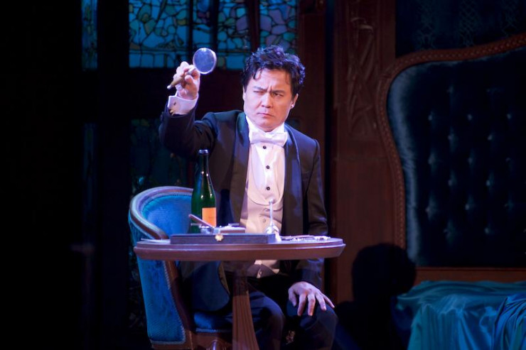 Легки и приятны глазу были декорации и костюмы Мананы Гуниа. Ее оригинальные находки позволили насладиться элегантным интерьером дома Дона Паскуале. Декорации-трансформеры - абсолютно добротная работа сценографа. Поэтические витражи стали приятным сюрпризом для публики: в конце спектакля они превратились в весенние сады. Разве это не чудо? Хороши были и костюмы для всех героев спектакля: современный крой, разнообразная цветовая гамма, в целом удачно выбранный стиль арт-нуво.