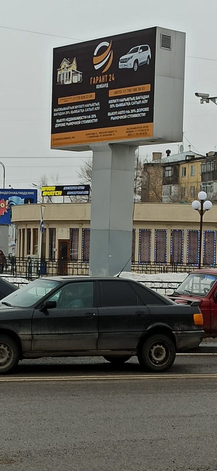Билборд с рекламным баннером компании "Гарант 24" сняли на видео в Караганде, передает корреспондент Tengrinews.kz.