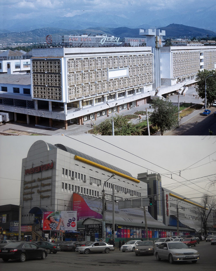 В Доме быта работало около 600 человек, и он предоставлял горожанам более 300 видов услуг, включая парикмахерские, химчистки, ателье, детские комнаты и даже пункты проката предметов обихода. Необычное, вытянутое вдоль улицы Пушкина сооружение было спроектировано в 1973-м архитекторами "КазгипроНИИбыт" Спиридоном Космериди и Владимиром Алле. В своем оригинальном облике оно сочетало модернистские элементы и национальный колорит. Фасад украшала солнцезащитная решетка с восточным орнаментом.