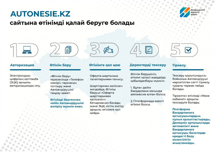 Жеңілдетілген автонесиелеу бағдарламасы бойынша өтінімдерді қабылдауға арналған пилоттық платформа іске қосылады. Ол туралы не білу керек? Massaget.kz тілшісі шолу жасады.