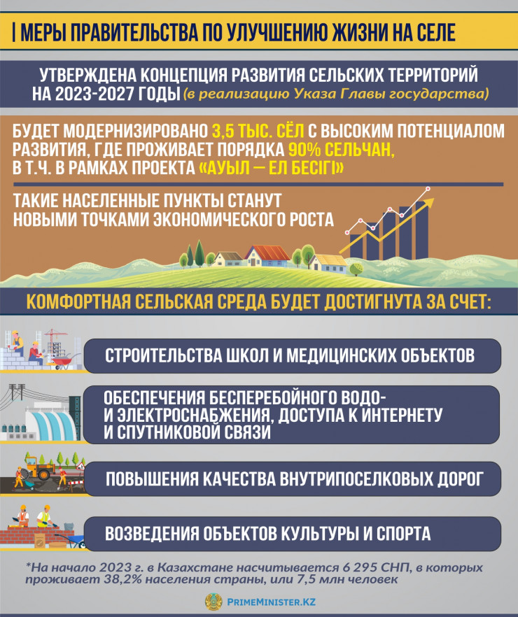 Концепция направлена на раскрытие социально-экономического потенциала сельских территорий с учетом их географических особенностей и конкурентных преимуществ. В рамках нее предусмотрены различные меры по повышению доходов и качества жизни сельчан. Напомним, что указ о разработке данной концепции Президент Касым-Жомарт Токаев подписал в ноябре 2022 года.