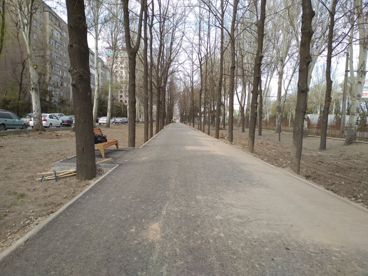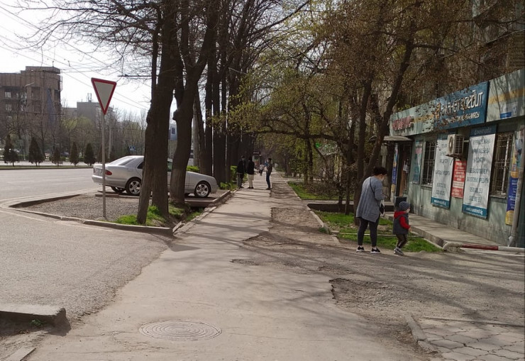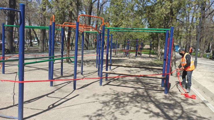 В районах Бишкека, куда запрещен проезд, муниципальные службы проводят дезинфекцию - моют дорожное полотно, скамейки, тротуары, а также базары.