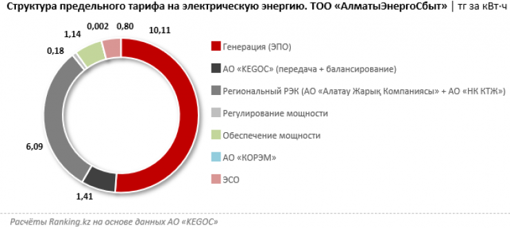 Что касается структуры тарифов в секторе, рассмотрим ее на примере Алматы.