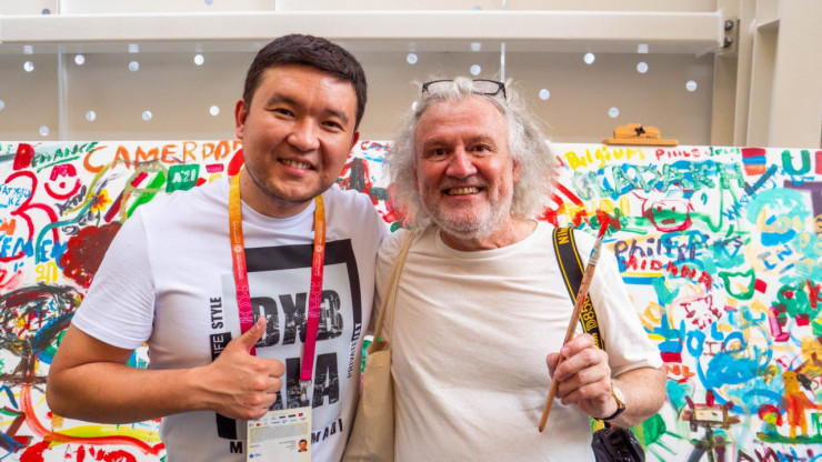 Вторую неделю сотни участников выставки стремятся оставить свой след на холсте World Painting ("Картина мира"). Это глобальный арт-проект, инициатором которого выступила казахстанская компания DPARTNERS - продюсеры Даут Шайхисламов и Дана Орманбаева - в коллаборации с международными коллегами.
