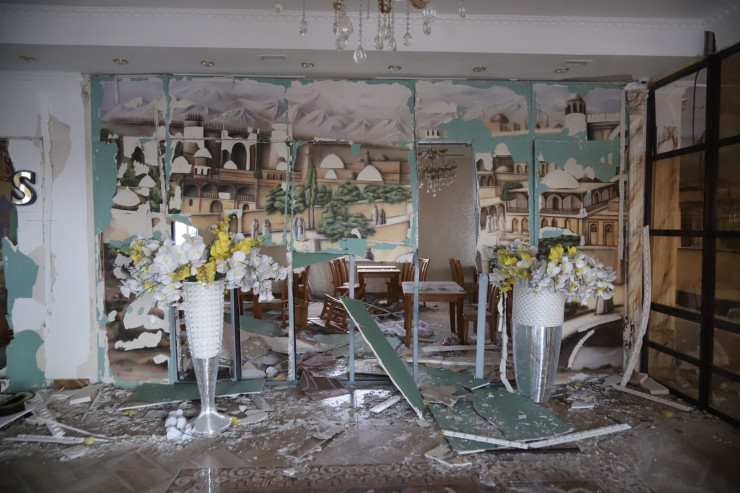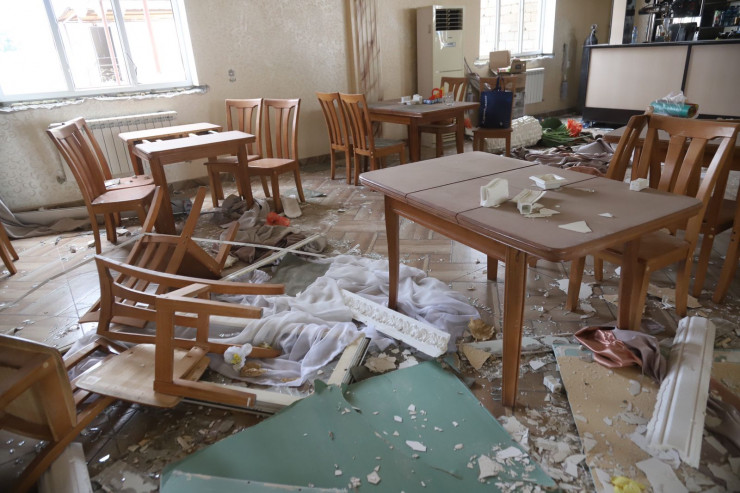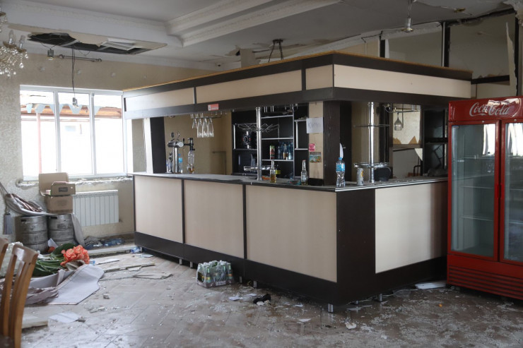 "Нас с супругом в это время там не было, мы как раз вчера уехали на лечение. Примерно к часам 6 вечера нам позвонили официанты. Они когда работали, произошел взрыв. Первой волной выбило стекла, люди падали, потом начали в панике бежать. Они все побежали на поле, кто-то побежал в Михайловку, это поселок рядом с нами. Потом уже началась подряд взрывная волна. Наш комплекс внутри почти полностью разрушен. Крыша, двери, окна - все непригодное. Все имущество повреждено", - говорит хозяйка комплекса.