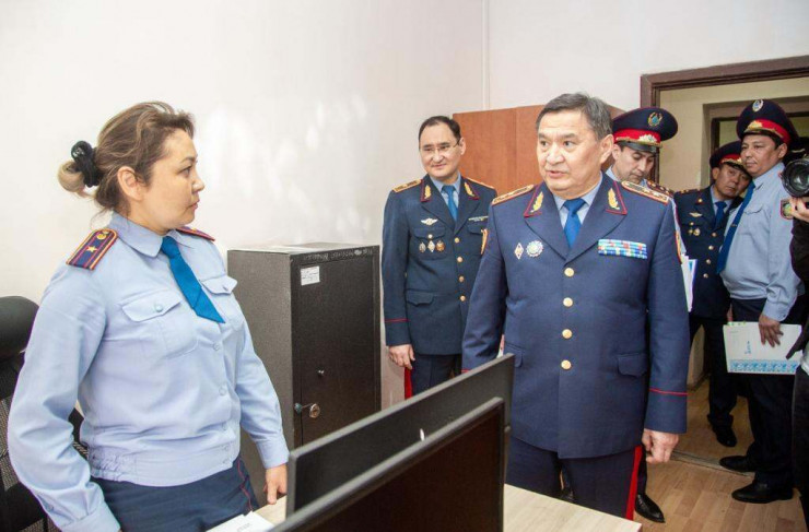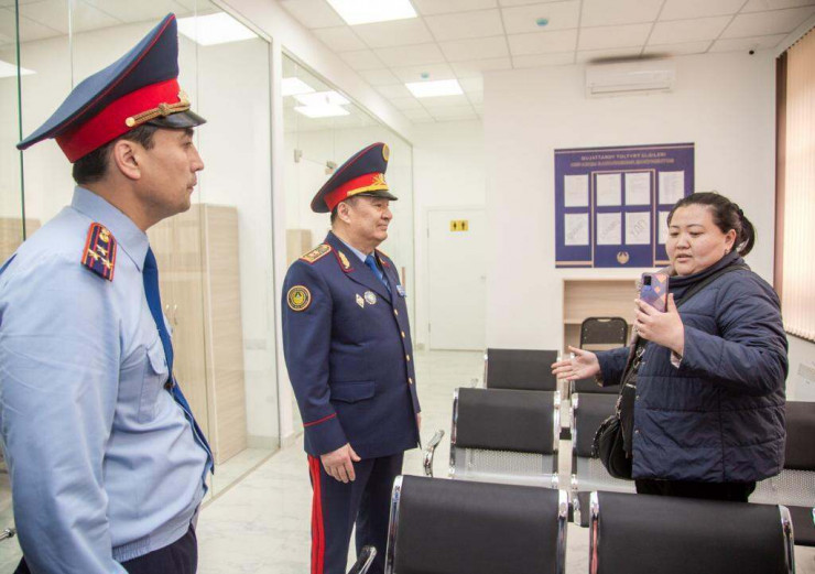 В подразделении полиции министр поговорил с посетителями. Выслушав каждого заявителя, он ответил на их вопросы и дал конкретные поручения начальникам соответствующих служб. Министр побывал в дежурной части, отделах дознания и следствия, изучил криминогенную обстановку района Байқоңыр.