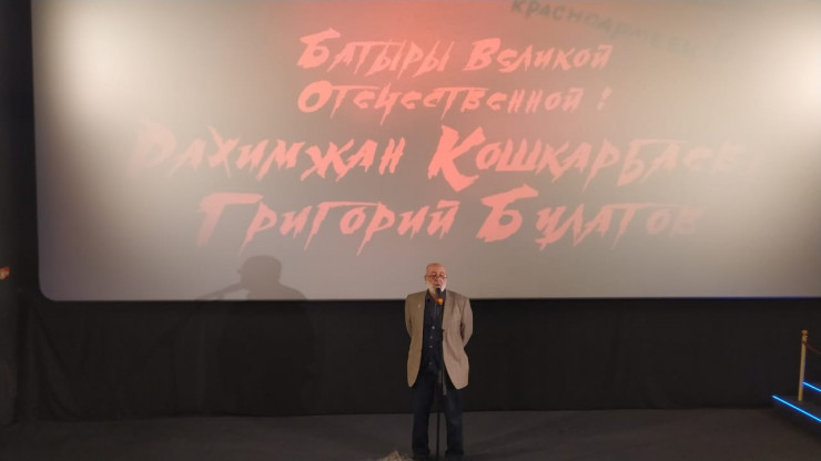 Закрытый показ документального фильма о героях-знаменосцах состоялся 30 апреля в Музее Победы в Москве, передает корреспондент Tengrinews.kz. Фильм "Батыры Великой Отечественной. Рахимжан Кошкарбаев, Григорий Булатов" приурочен к 77-й годовщине штурма Рейхстага.