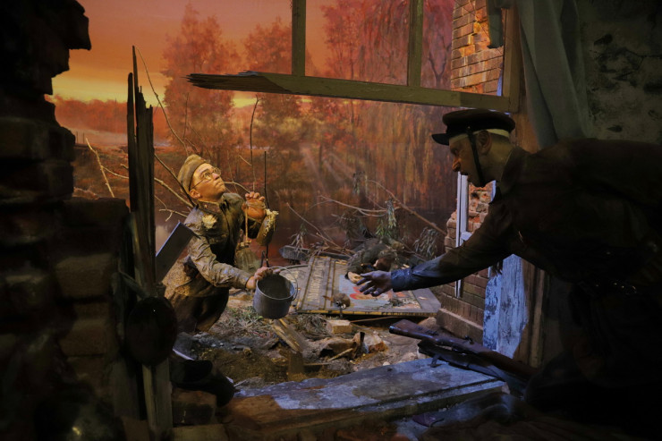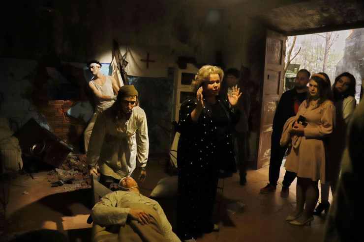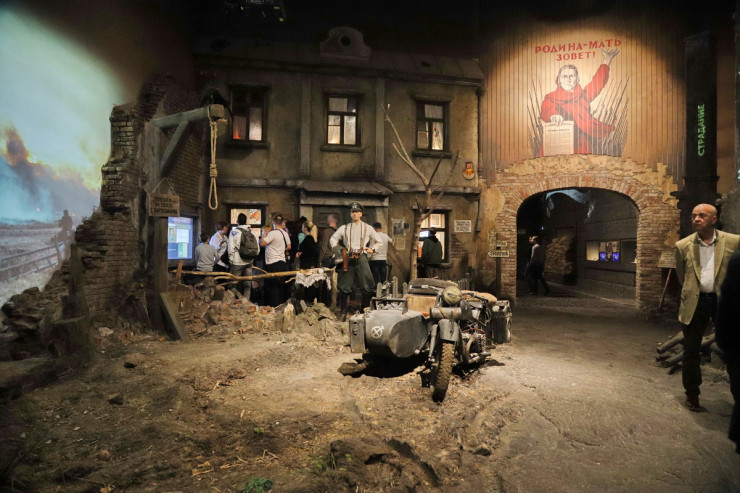 "Здесь повествуют о подвиге Панфиловской дивизии, бойцы которой оказали серьезное сопротивление многократно превосходящим силам противника при обороне Москвы. Рассказывают о стратегическом таланте комбата Бауыржана Момышулы и подвигах Алии и Маншук. Большой раздел посвящен эвакуации в Казахстан заводов, институтов, организаций и налаживанию в тылу производства оружия и боеприпасов, обмундирования и снаряжения для бойцов Красной Армии. Девять пуль из десяти были отлиты из добываемого на территории Казахстана свинца. В Казахстане не было ни одного крупного города, где бы не разместили госпитали для раненых. Посетители узнают, что в годы войны врачам удалось добиться самого высокого в мире процента восстановления здоровья раненых бойцов", - подчеркнул сценарист.