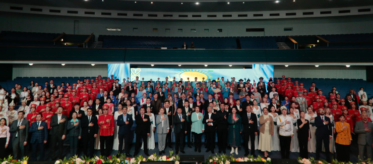 Как сообщается, около 400 человек собрались перед сценой филармонии и исполнили государственный гимн Республики Казахстан.