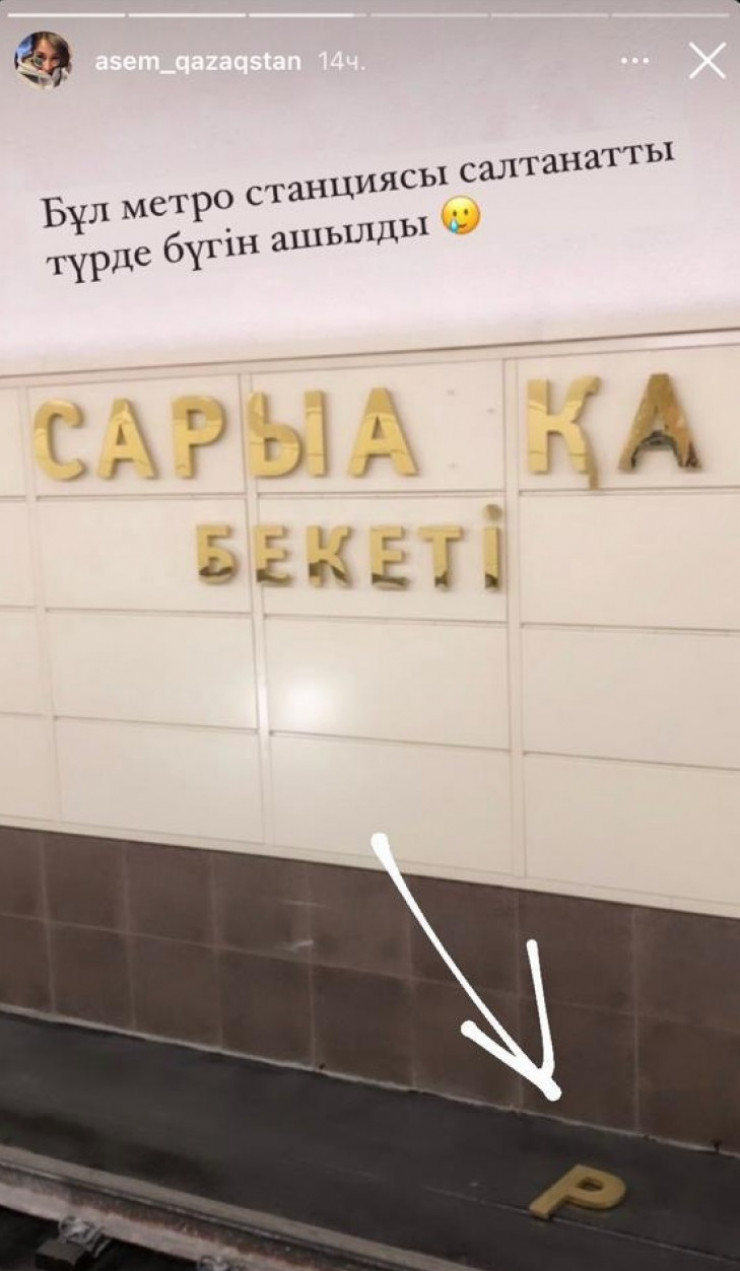 "Да, действительно, на платформе выпала одна буква из надписи названия станции "Сарыарка". Она была восстановлена после окончания рабочего дня и снятия напряжения с контактного рельса, так как во время работы контактный рельс находится под напряжением 825 вольт - спускаться на пути запрещено. Отметим, что выявленные при полной эксплуатации недоработки приводятся в порядок в рамках гарантийных обязательств", - сообщили в пресс-службе КГП "Метрополитен".