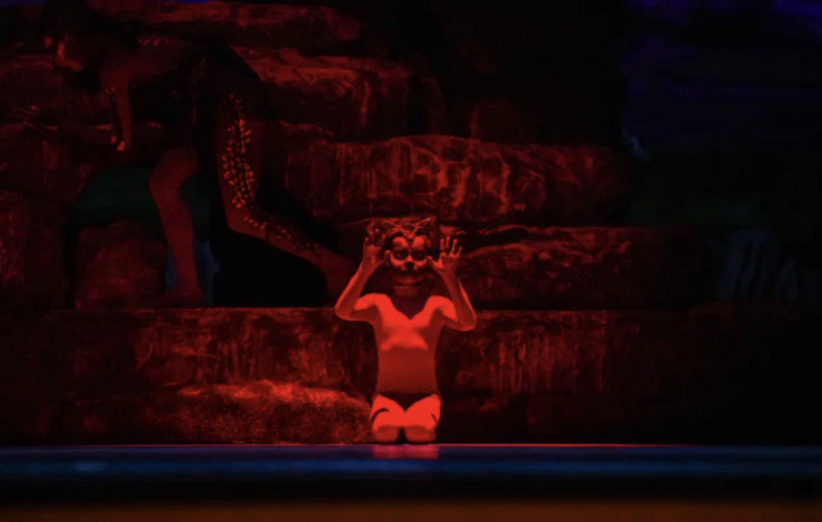 На сцене нет какой-то хитрой машинерии, но очень современным делает ее оформление многослойный мультимедийный фон видеохудожника Дмитрия Шамова, оживляющий все сценическое пространство.