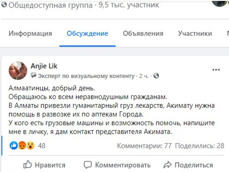 В социальных сетях появилась рассылка с просьбой помочь развезти гуманитарный груз в аптеки Алматы. В акимате разъяснили ситуацию, передает корреспондент Tengrinews.kz.