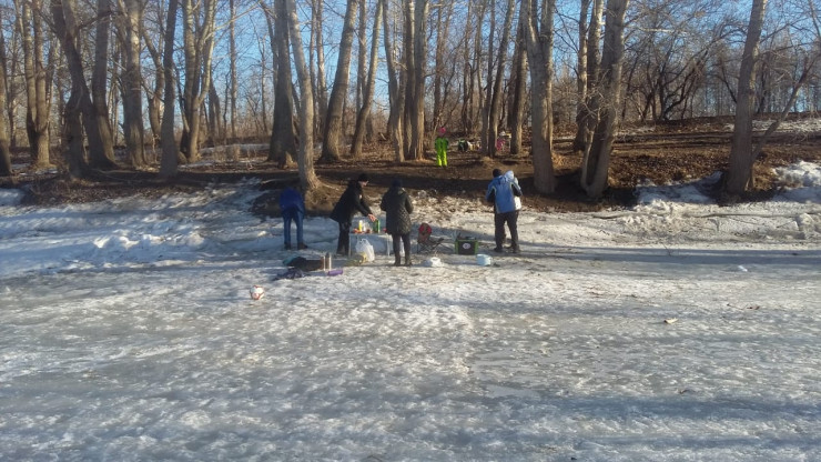 29 марта около 15.30 поступило сообщение, что на реке Усолка, несмотря на опасность весеннего льда, рыбаки устроили пикник на льду и подледный лов рыбы. На место незамедлительно выехала дежурная смена спасателей. По прибытии установлено, что две семейные пары с несовершеннолетними детьми устроили пикник, поставили столик, стульчики и готовили на льду шашлык", - сообщили в пресс-службе ДЧС региона.