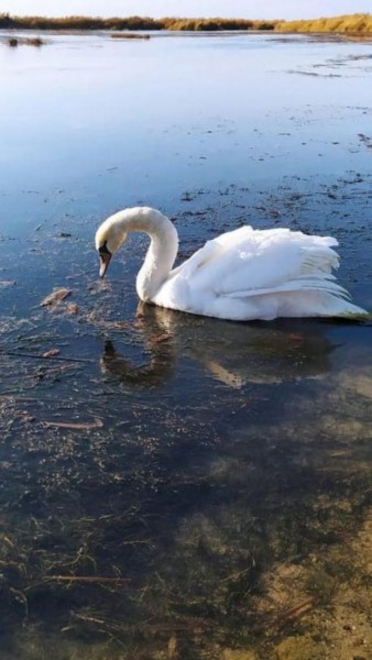 Как раз в этот период на озере много лебедей, и есть вероятность тоже, что птица прибьется к стае сородичей.