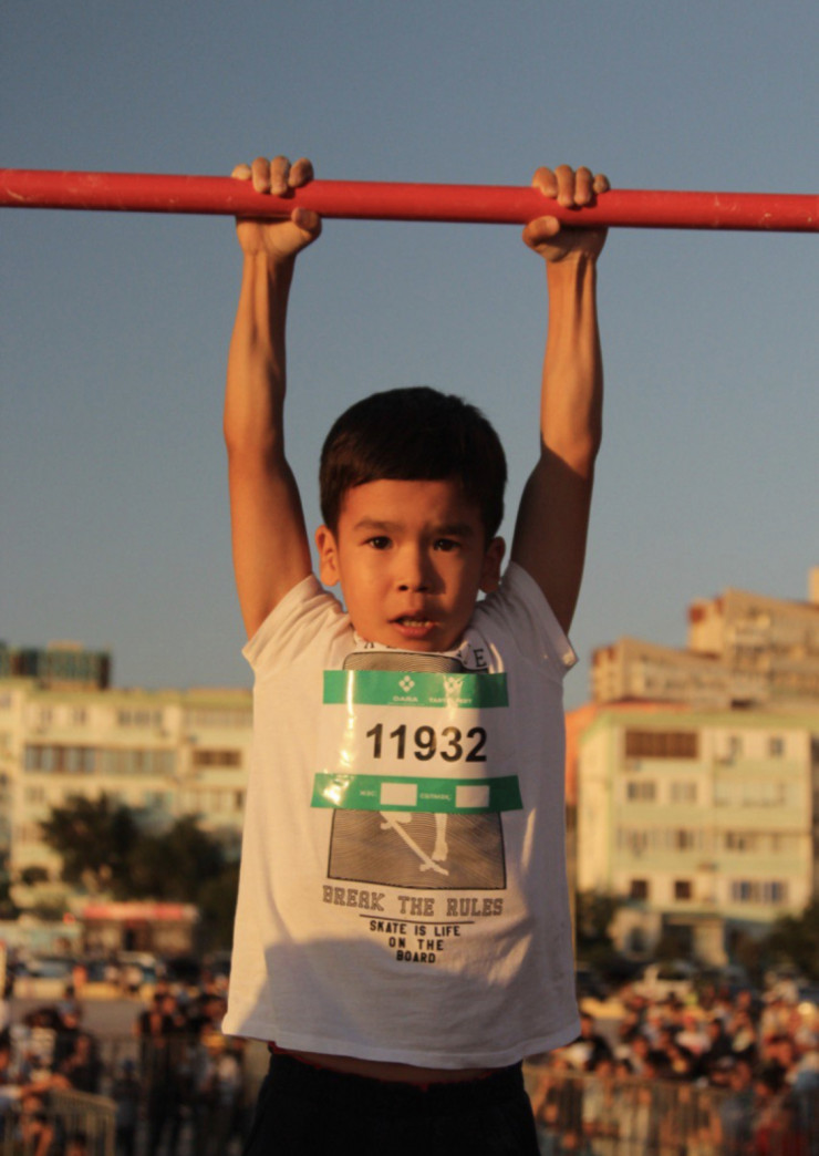 Самыми юными участниками в Актау стали 7-летние спортсмены - Аслан Сансызбай, подтянувшийся 10 раз, и Арсен Рамиль, который сделал 11 подтягиваний.