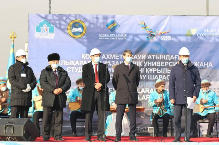 В Туркестане состоялась церемония закладки фундамента под строительство современных трех общежитий на 1500 мест для студентов Международного казахско-турецкого университета имени Яссауи. В специальной капсуле заложена историческая записка с пожеланиями и обращениями к будущим студентам 2050 года.