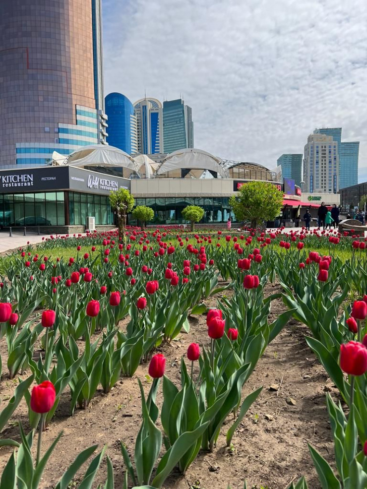 "Осенью 2020 года мы высадили 132 тысячи луковиц тюльпанов. В мае 2021 года они взошли, город стал ярче и значительно преобразился. Тюльпаны понравились горожанам. Прошлой осенью высадили еще 224 тысячи луковиц тюльпанов. И сейчас видим, как взошли тюльпаны, луковицы которых были высажены как в 2020 году, так и в 2021 году. К примеру, у монумента "Байтерек", на круглой площади, в Ботаническом саду, на правом берегу (Абая-Сарыарка, Республика-Богенбая, Женис-Есенберлина, Кенесары-Валиханова, проспект Момышулы), на центральной площади, возле памятника Бауржану Момышулы, возле скверов. Получается, во всех районах можно увидеть яркие тюльпаны - красные, желтые, белые", - отметили в ТОО "Астана Зеленстрой".