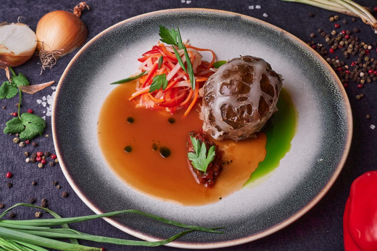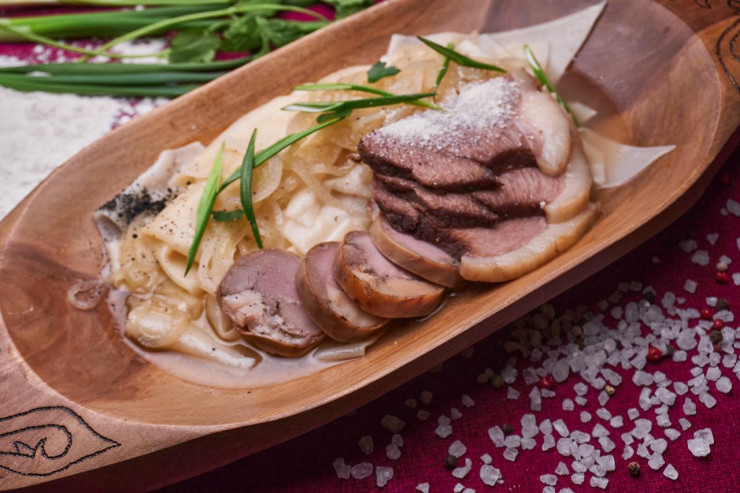 "Поскольку мы развиваем местный туризм, то нам было важно, чтобы люди, приехавшие из гастрономического рая Шымкента, из Алматы и столицы, насыщенных всеми форматами ресторации, чтобы они вдруг еще чему-то удивились. Чем удивлять можно здесь, на востоке? Мы обязательно в свою гастрономию вставляем все, что есть у нас, все, что выращивается и производится здесь. Например, подсолнечник, мед, горные травы, рыба, мясо марала. Вот вы все ели куырдак, да. Мы делам куырдак из марала, в казанке из талкана, на шубате и меду алтайском, с посыпкой из кедровых орешков. Мы удивляем особым рецептом бешбармака. Мы берем казы, жая, не варим его, как все, мы его томим 6 часов в казане, на подстилке из лука горных трав Алтая. Он пропитывается сочным ароматом горных трав риддерских и катонских гор. И затем подаем его томленым, с картофелем, черемшой и диким луком. Мы удивляем вот так".