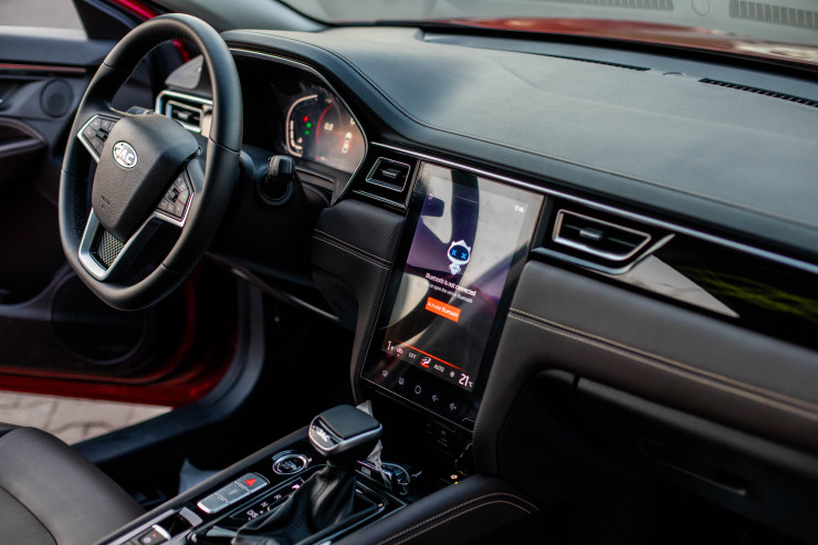 Приборная панель имеет графическую оболочку. Но реальной изюминкой интерьера стал планшет-мультимедиа диагональю 10.4 дюйма с нестандартным вертикальным расположением. На нем осуществляется управление медиасистемой и климатом салона, что еще раз подчеркивает высокотехнологичный функционал передней панели. Причем планшет поддерживает управление голосовыми командами. Также в салоне присутствует динамическая подсветка, способная менять цвет до 64 оттенков в зависимости от ритма музыки. Все эти инновационные и футуристические решения придадут будущему владельцу авто ощущения уже прибывшего будущего.