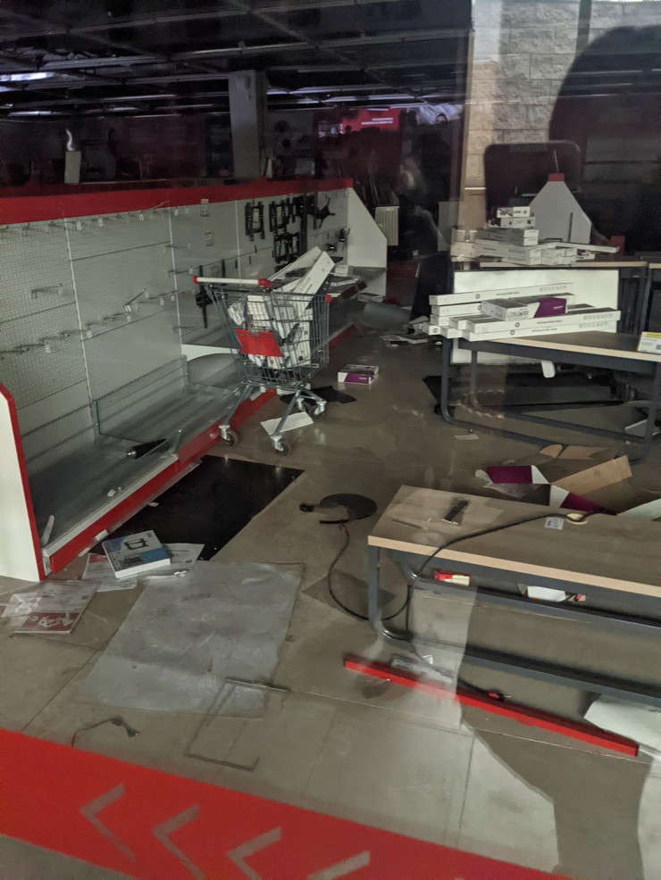 Больше всего пострадали магазины электроники. Мародеры выносили айфоны, ноутбуки и телевизоры. А крупную технику, которую не смогли вынести, просто разбили.
