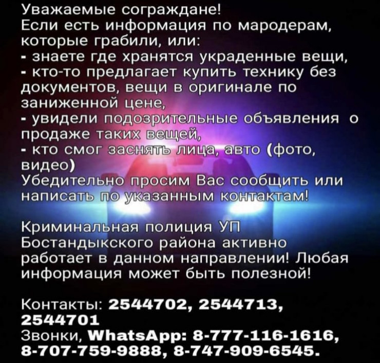 Телефоны Управления полиции Алмалинского района: 87087079202, 87055557763, 87775489991, 87073332750.