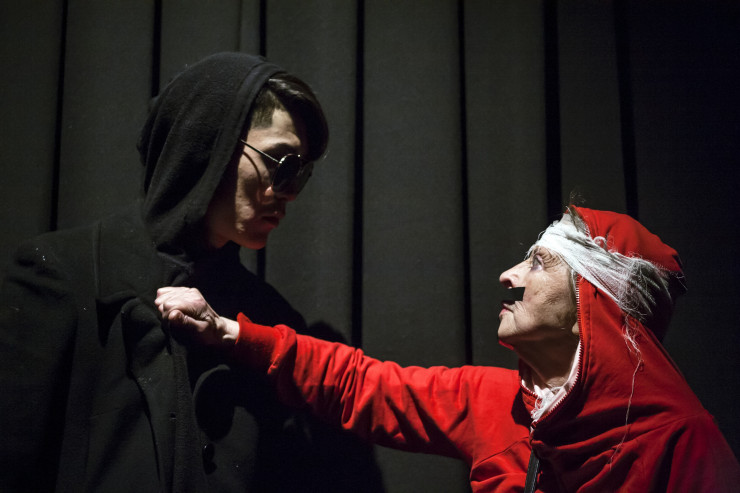 Интересно и использование русского языка в спектакле: речь в трактовке режиссера становится маркером "чуждости" и "потусторонности". Но есть и забавный эпизод, связанный с тем, когда один из героев вдруг переходит с казахского на русский, сходите сами, чтобы убедиться и улыбнуться.