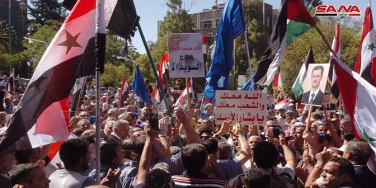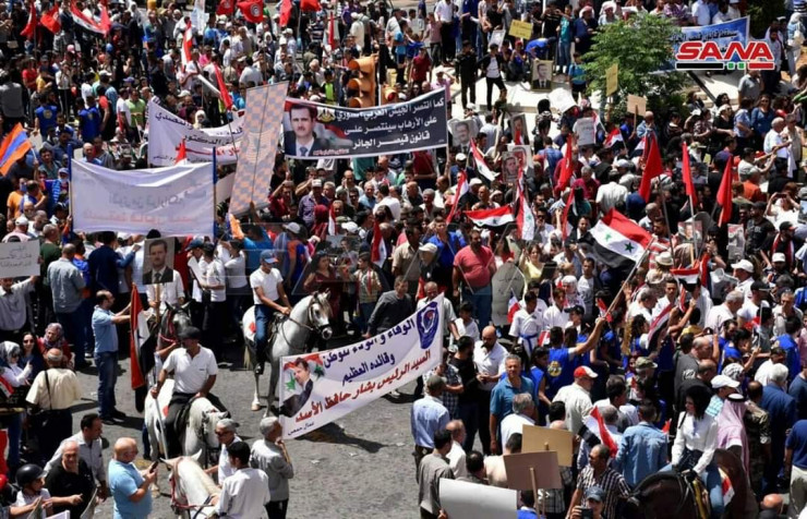 Протестные акции против санкционной политики США и в поддержку правительства в Хомсе