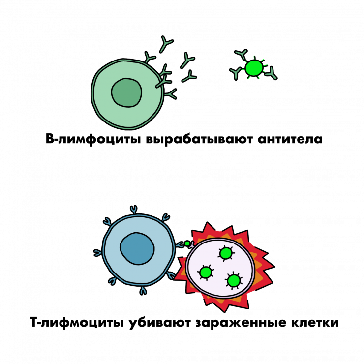 Многие теперь знают про антитела. Они призваны защищать нас от коронавируса. Помимо антител, наша иммунная система мобилизует весь свой арсенал, который включает так называемые Т- и В-лимфоциты, макрофаги, а также другие иммунные клетки.