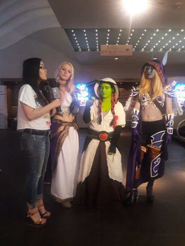 А на фото запечатлено, возможно, самое красивое интервью в Казахстане на этой неделе. Слева направо - симпатичная журналистка, и три косплейщицы в образах волшебницы Джейны Праудмор, вождя орков Тралла и бывшей предводительницы высших эльфов Сильваны Ветрокрылой, превращенной в банши. К слову, в фильме из них есть только Тралл, и то в младенческом возрасте. Это если говорить о количестве доступного материала и возможных сюжетах.