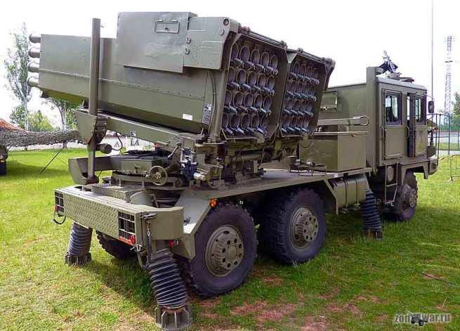 Как сообщает украинское издание Dialog.ua, система LAROM представляет собой дальнейшее развитие румынской РСЗО APRA-40, которая является модифицированным вариантом советской РСЗО БМ-21 "Град". На одной машине LAROM установлены два пусковых контейнера, разработанных в двух калибрах: 20-ствольный для отстрела 122-мм стандартных ракет "Град" и 13-ствольный для отстрела 160-мм ракет IMI LAR Mk.4.