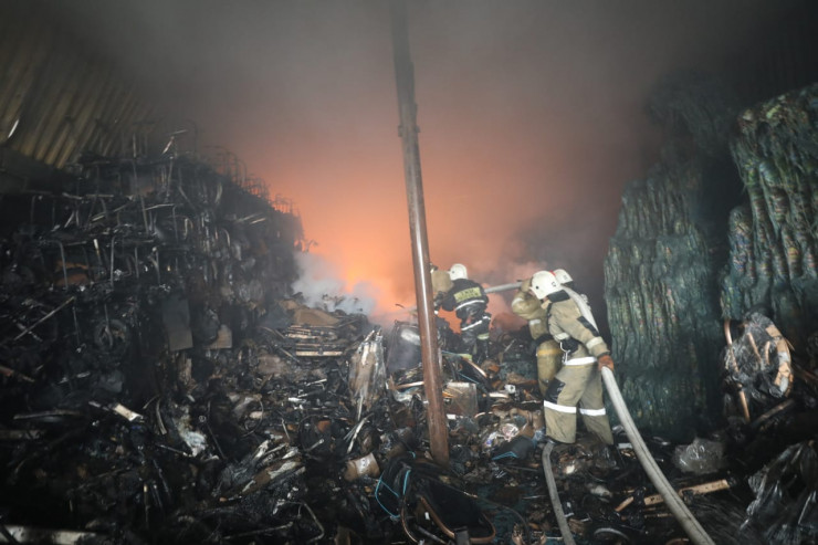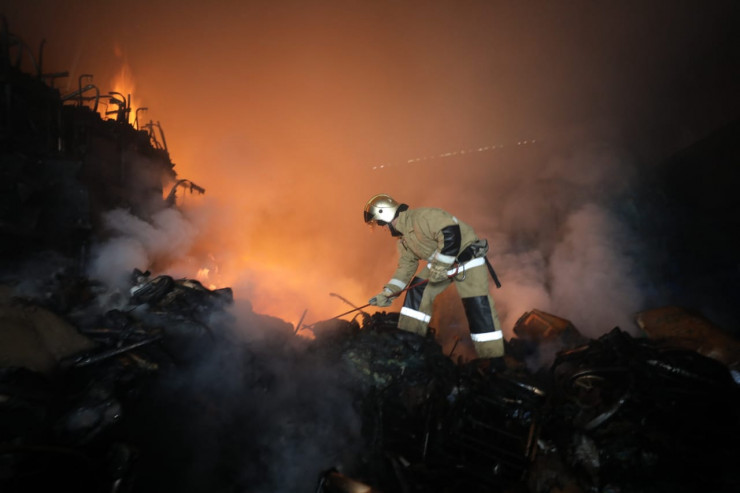 По данным пресс-службы ДЧС Алматы, пожар на складах ТМЦ, расположенных в районе северного кольца 87Г, разгорелся примерно в 4.40 утра.