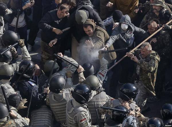 В ходе столкновений перед зданием украинского парламента неизвестные бросили боевую гранату в толпу, передает корреспондент Tengrinews.kz. Как сообщают украинские силовики и пользователи соцсетей, в результате взрыва пострадало несколько десятков человек, преимущественно бойцы Нацгвардии и полицейские.